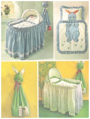 a baby's basket skirt and basket liner, a comforter and pillow care and